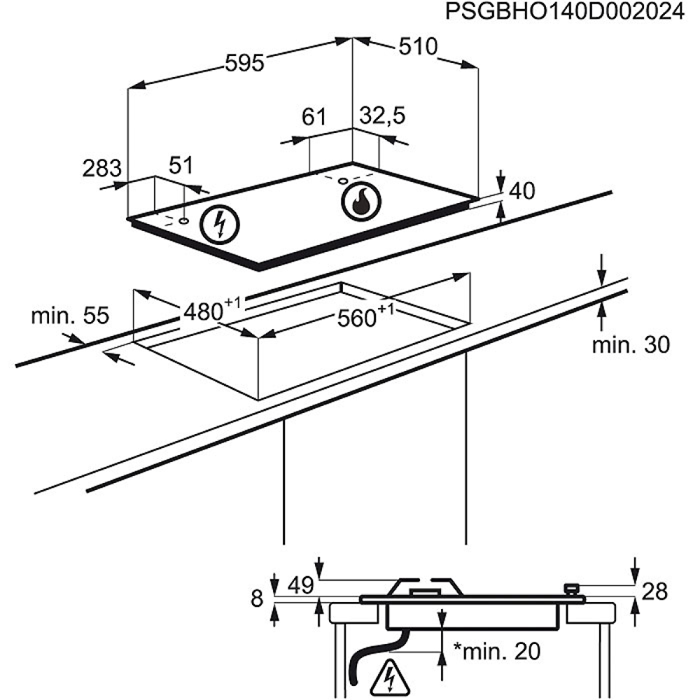 Electrolux EGH96333BX - схема встраивания к варочной панели на разных языках на Hausdorf