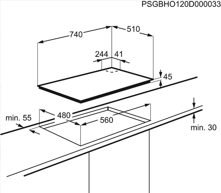 Electrolux GPE373YV - схема встраивания с размерами к варочной панели на разных языках на Hausdorf