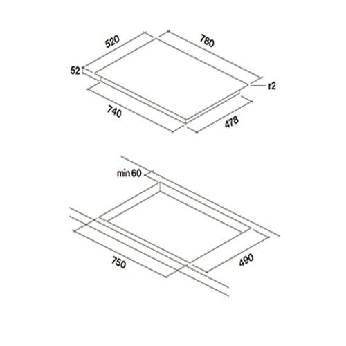 Falmec PIANO INDUZIONE (78 Х 52) - схема встраивания к варочной панели на разных языках на Hausdorf