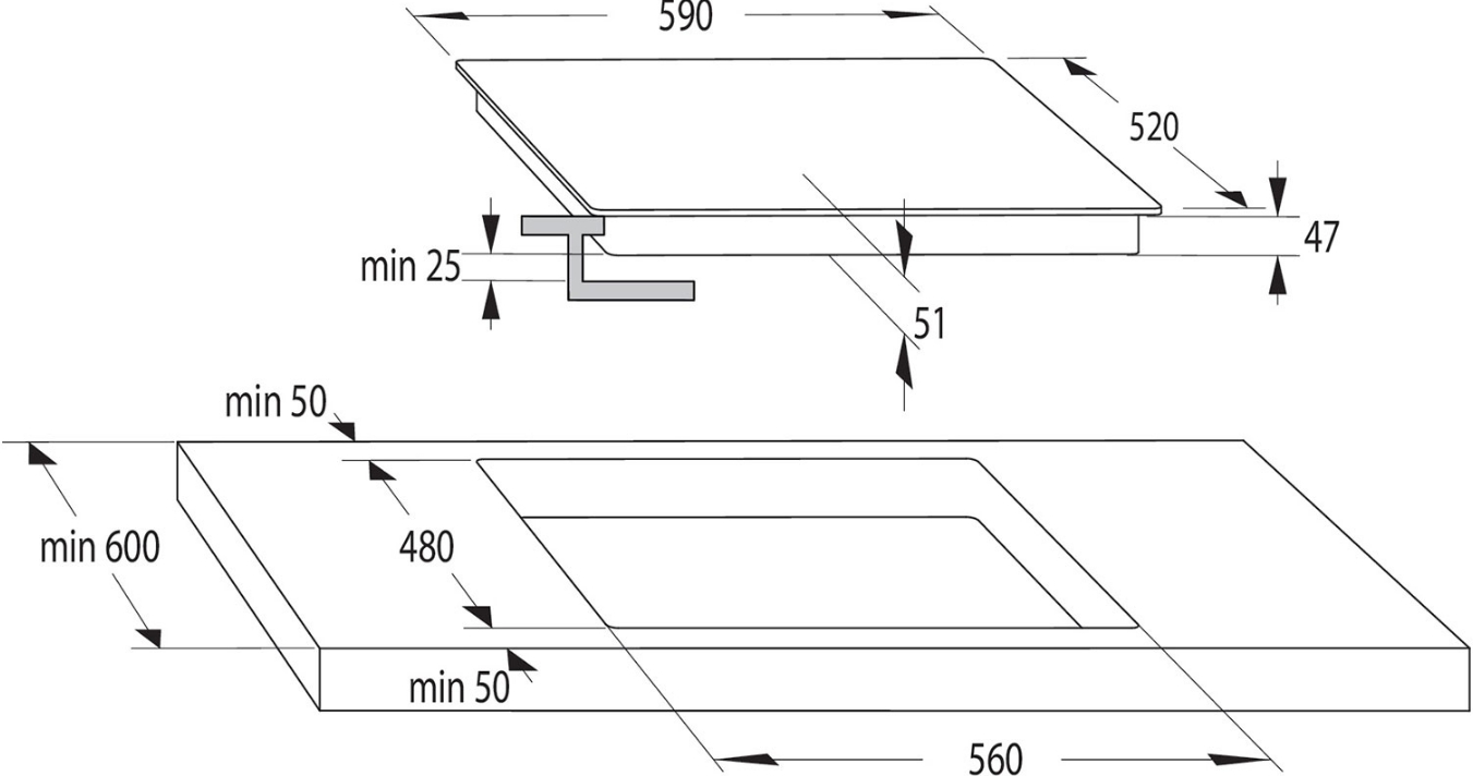 Gorenje ECT632BSCE - схема с размерами к варочной панели на разных языках на Hausdorf