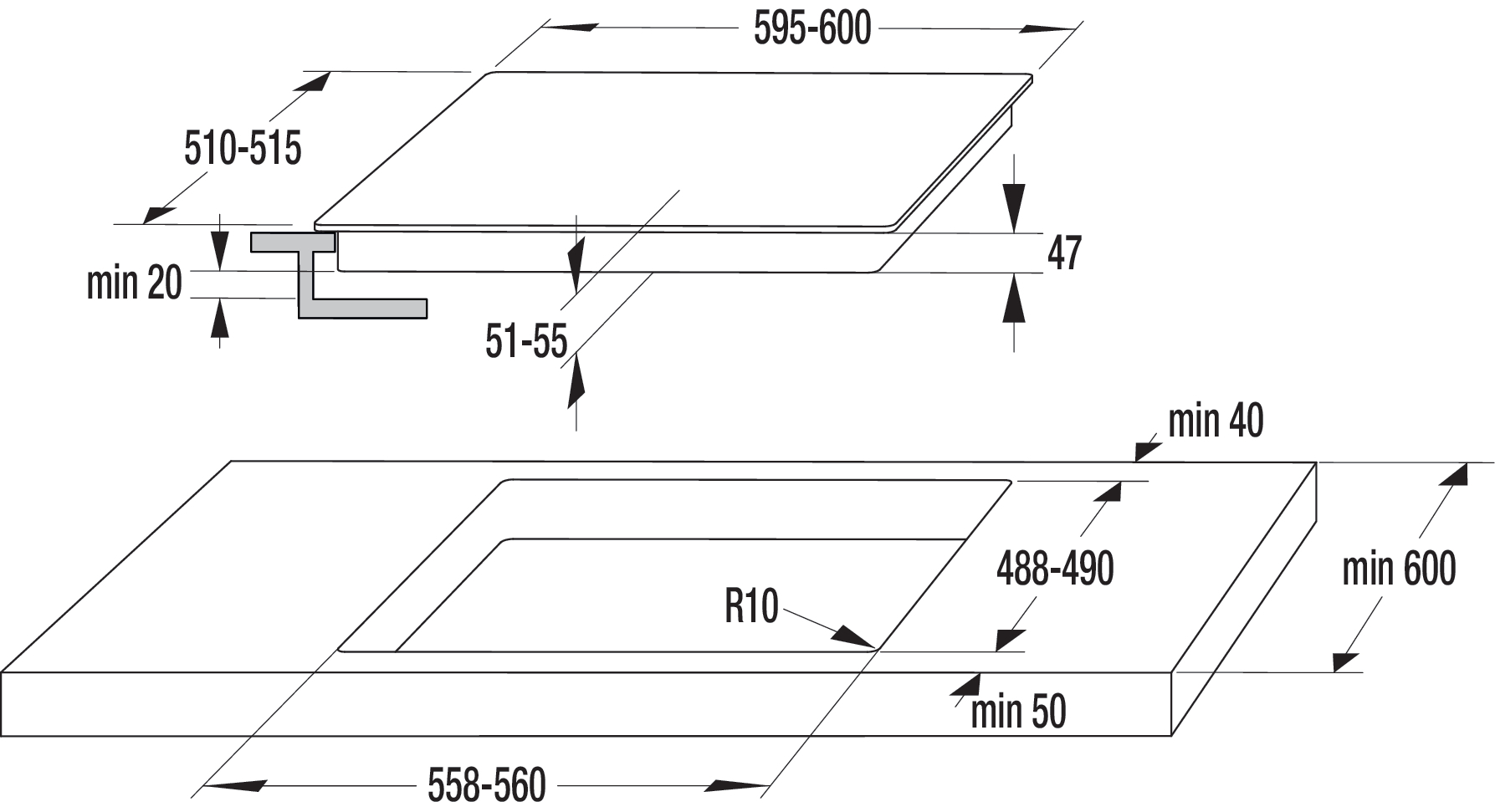 Gorenje ECT693ORAB - схема встраивания к варочной панели на разных языках на Hausdorf