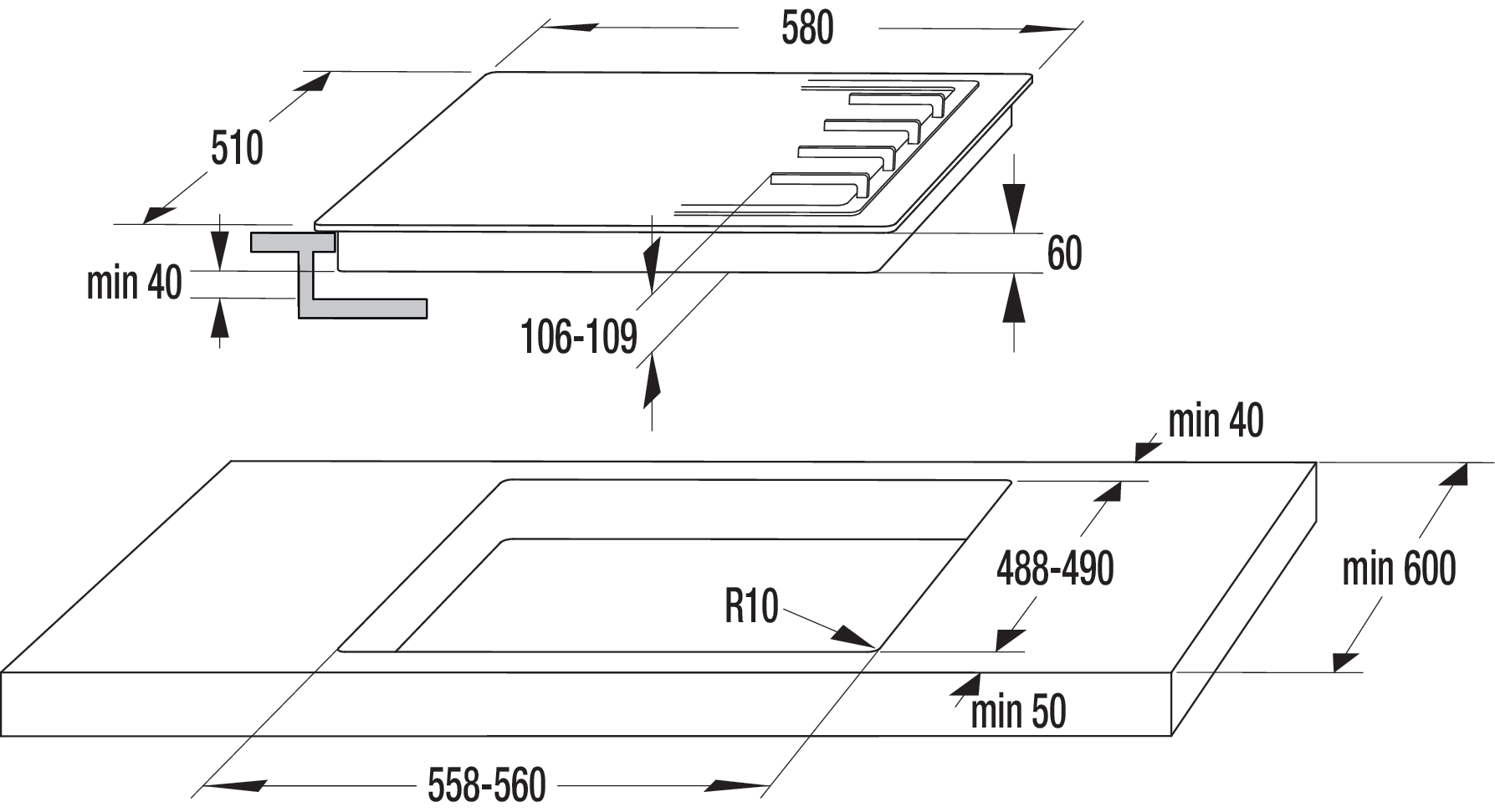 Gorenje G 65 W - схема встраивания к варочной панели на разных языках на Hausdorf