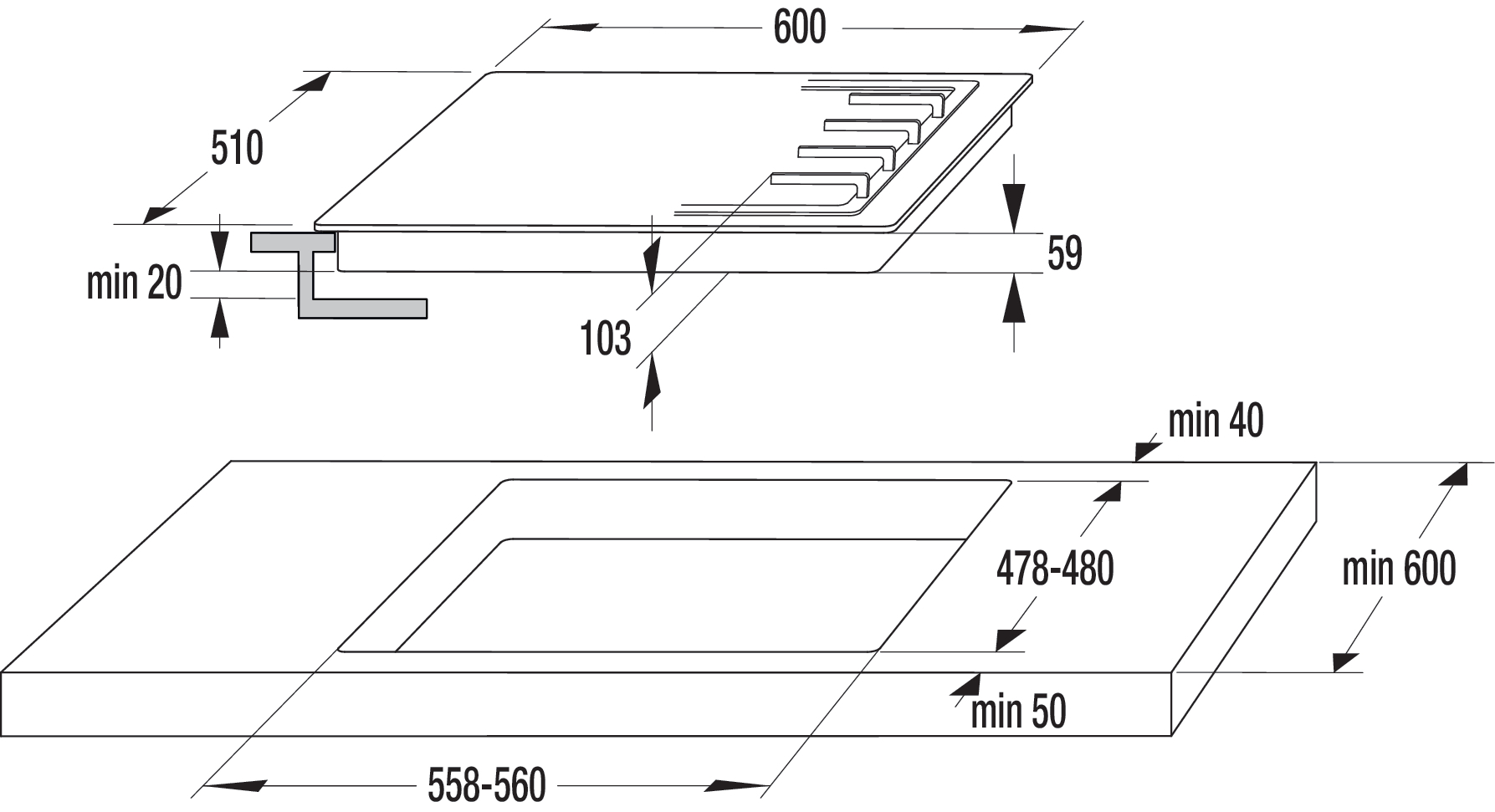 Gorenje G 6SY2W - схема встраивания к варочной панели на разных языках на Hausdorf