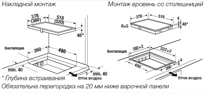 Kuppersbusch VKI 3800.1 SR - схема встраивания с размерами к варочной панели на разных языках на Hausdorf