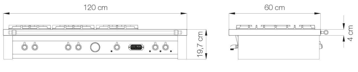 Lofra TRS126/5C CHROME - схема с размерами к варочной панели на разных языках на Hausdorf