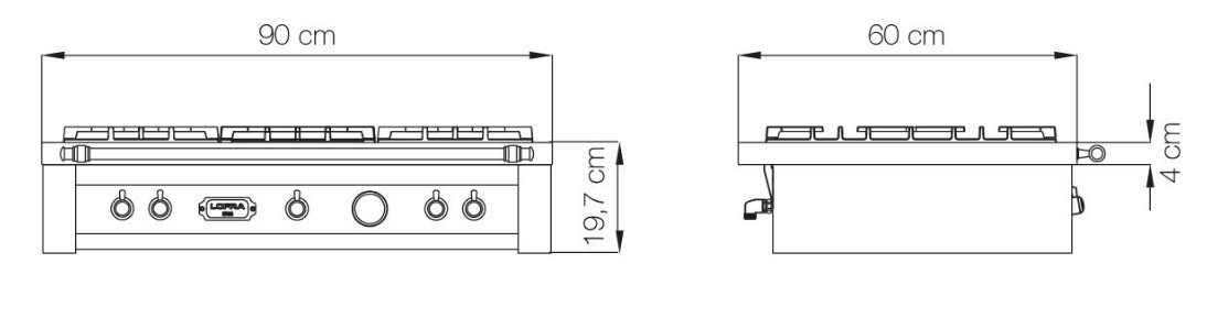 Lofra TRS96/5 BRASS - схема с размерами к варочной панели на разных языках на Hausdorf