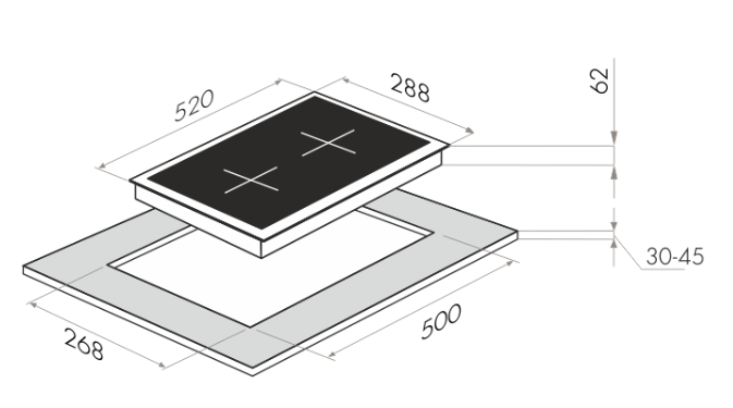 Maunfeld EVI.292-BG - схема встраивания к варочной панели на разных языках на Hausdorf
