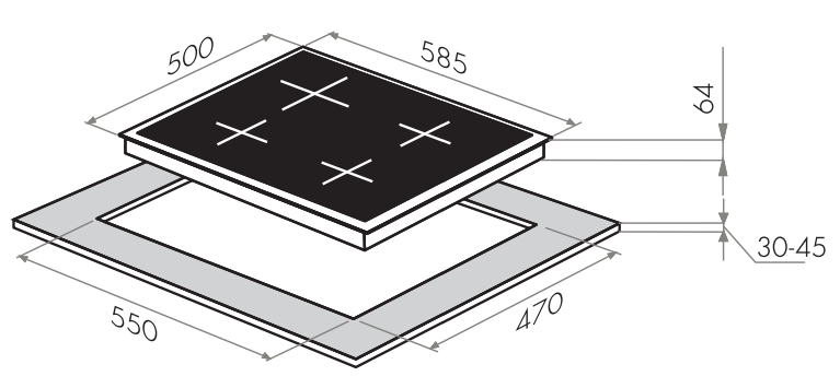 Maunfeld MGHEV.64.43RCC - схема встраивания к варочной панели на разных языках на Hausdorf