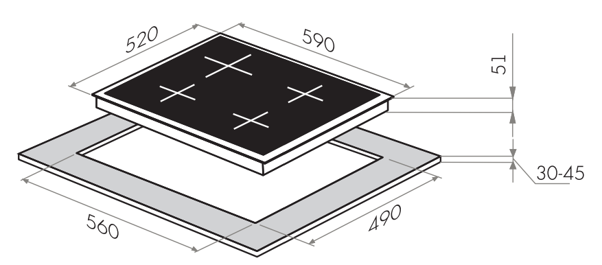 Maunfeld MGHS.64.77S - схема встраивания к варочной панели на разных языках на Hausdorf