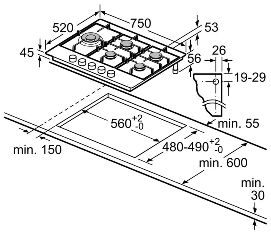 Neff T27DS79N0D - схема с размерами версия 2 к варочной панели на разных языках на Hausdorf
