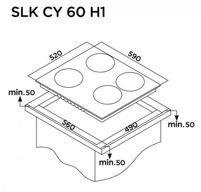 Schaub Lorenz SLK СY 60 H1 - схема с размерами версия 2 к варочной панели на разных языках на Hausdorf