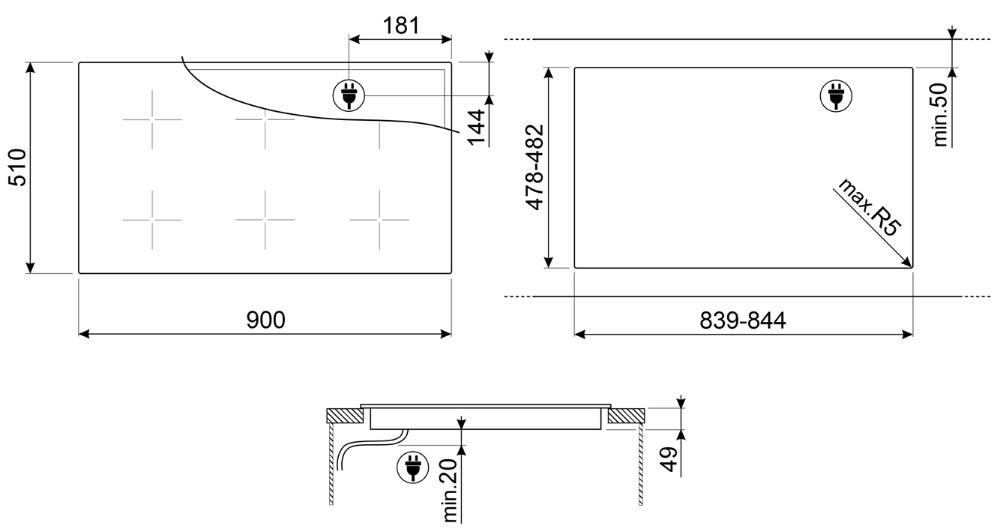 Smeg SI1M4954D - схема встраивания с размерами к варочной панели на разных языках на Hausdorf