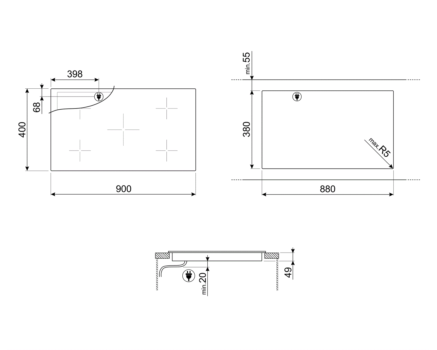 Smeg SIH7933B - схема встраивания к варочной панели на разных языках на Hausdorf