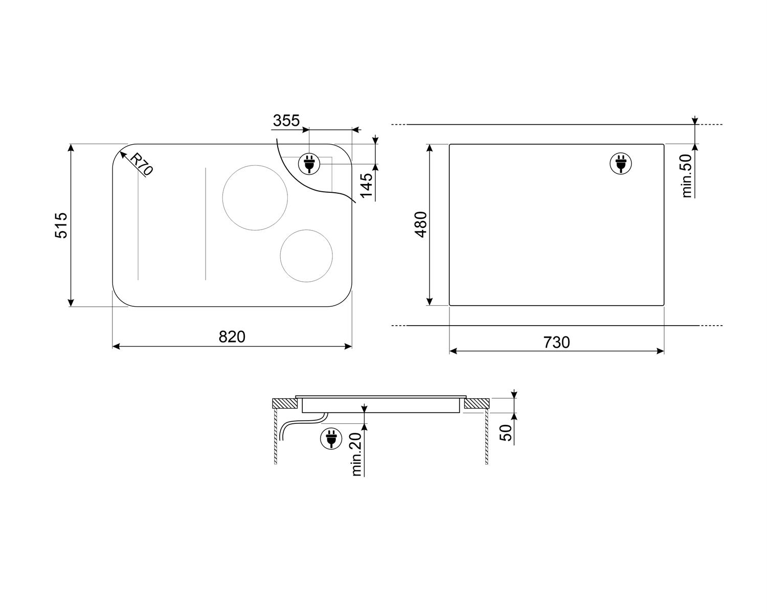 Smeg SISL7844 - схема с размерами версия 2 к варочной панели на разных языках на Hausdorf