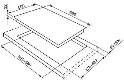 Smeg SPR876RAGH - схема встраивания к варочной панели на разных языках на Hausdorf