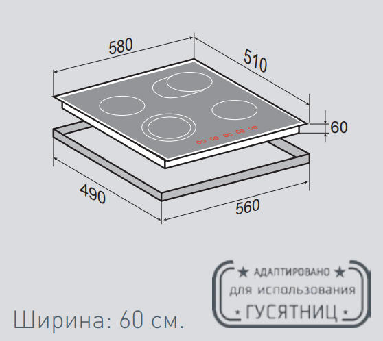 Zigmund Shtain CNS 021.60 DX - схема встраивания к варочной панели на разных языках на Hausdorf