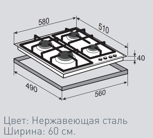 Zigmund Shtain GN 238.61 S - схема встраивания к варочной панели на разных языках на Hausdorf