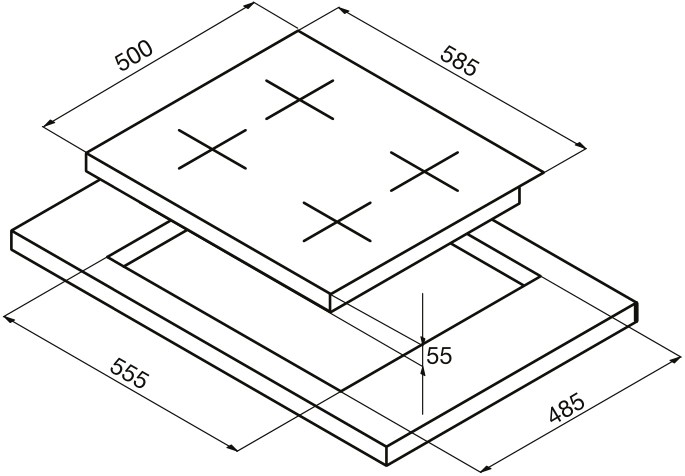 Korting HGG 685 CTB - схема встраивания к варочной панели на разных языках на Hausdorf