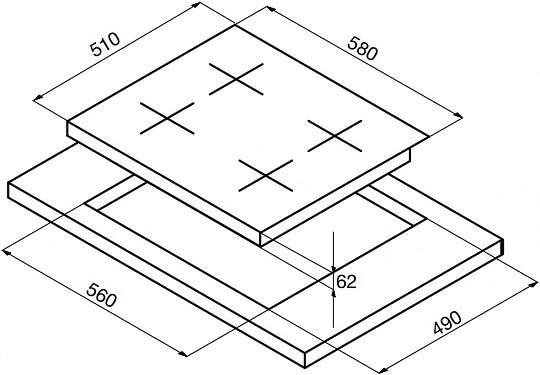 Korting HK 60001 BW - схема встраивания к варочной панели на разных языках на Hausdorf