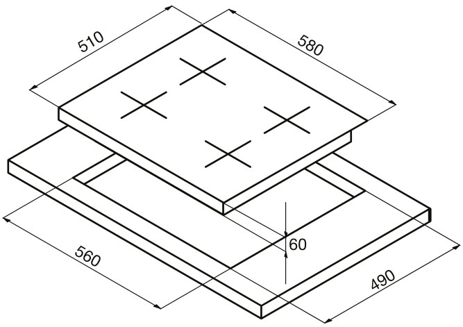 Korting HK 62051 BW - схема встраивания к варочной панели на разных языках на Hausdorf
