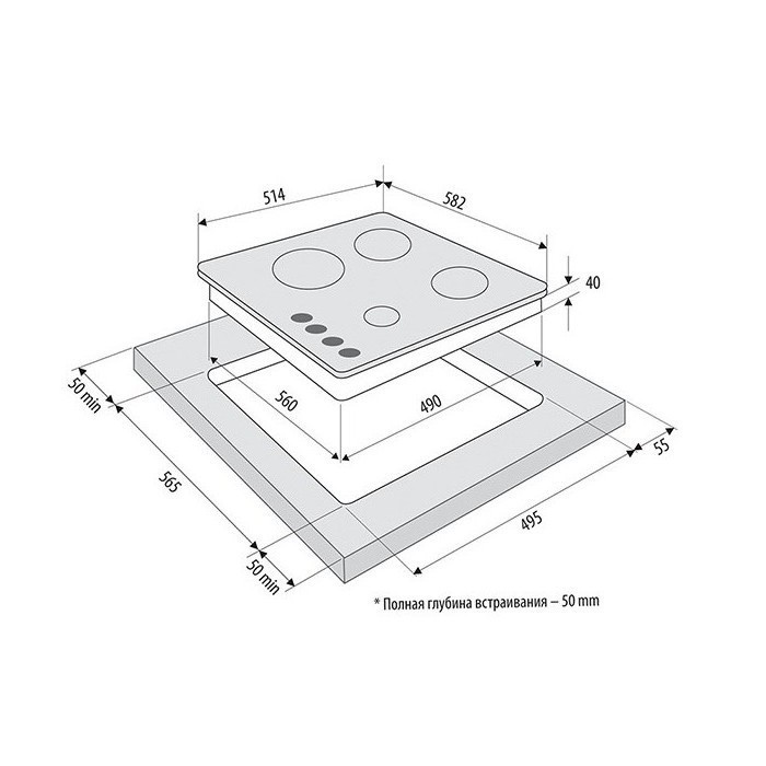 KRONA ARMONIA 60 WH - схема с размерами версия 2 к варочной панели на разных языках на Hausdorf