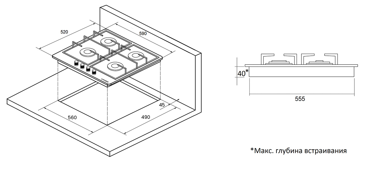 Kuppersberg FQ65 W - схема встраивания к варочной панели на разных языках на Hausdorf
