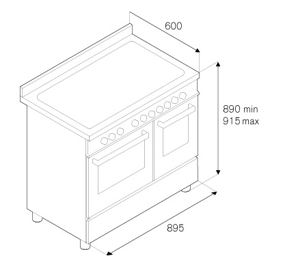 Bertazzoni HER905IMFEDCRT - схема с размерами к варочному центру на разных языках на Hausdorf