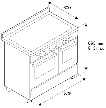 Bertazzoni MAS95I2ENET - схема с размерами к варочному центру на разных языках на Hausdorf