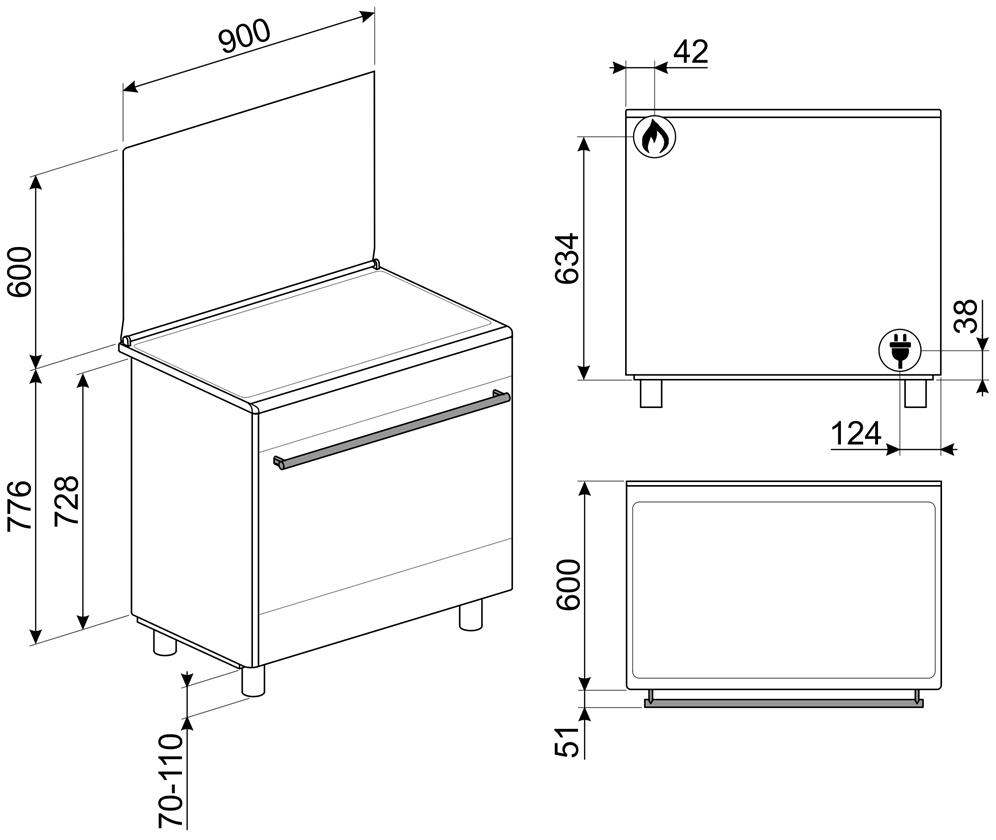 Smeg CX91GM - схема с размерами к варочному центру на разных языках на Hausdorf
