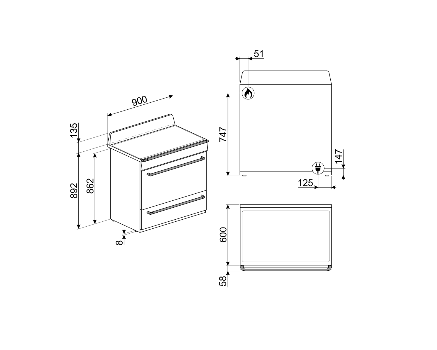 Smeg TR90DGM9 - схема с размерами к варочному центру на разных языках на Hausdorf