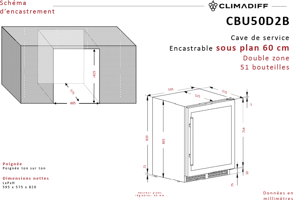 Climadiff CBU50D2B - схема встраивания Винный шкаф к винному шкафу на разных языках на Hausdorf