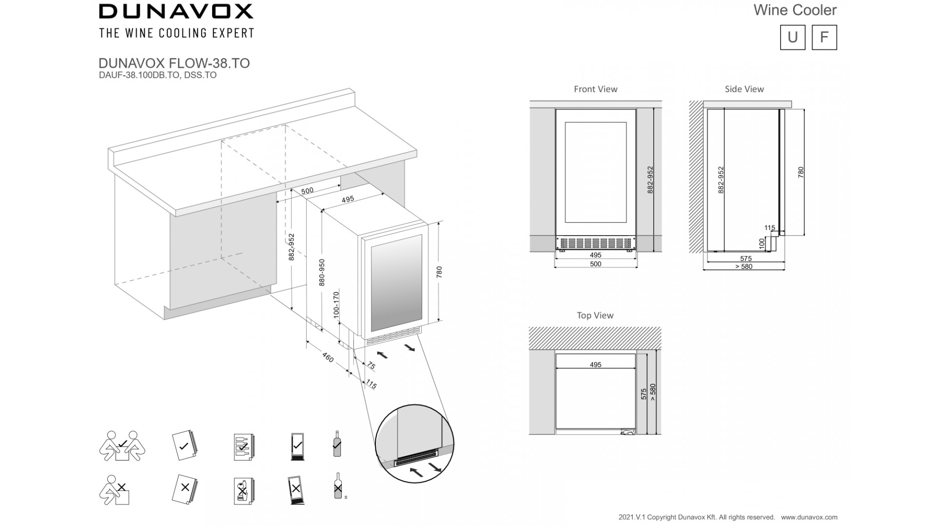 Dunavox DAUF-38.100DMB - схема встраивания к винному шкафу на разных языках на Hausdorf