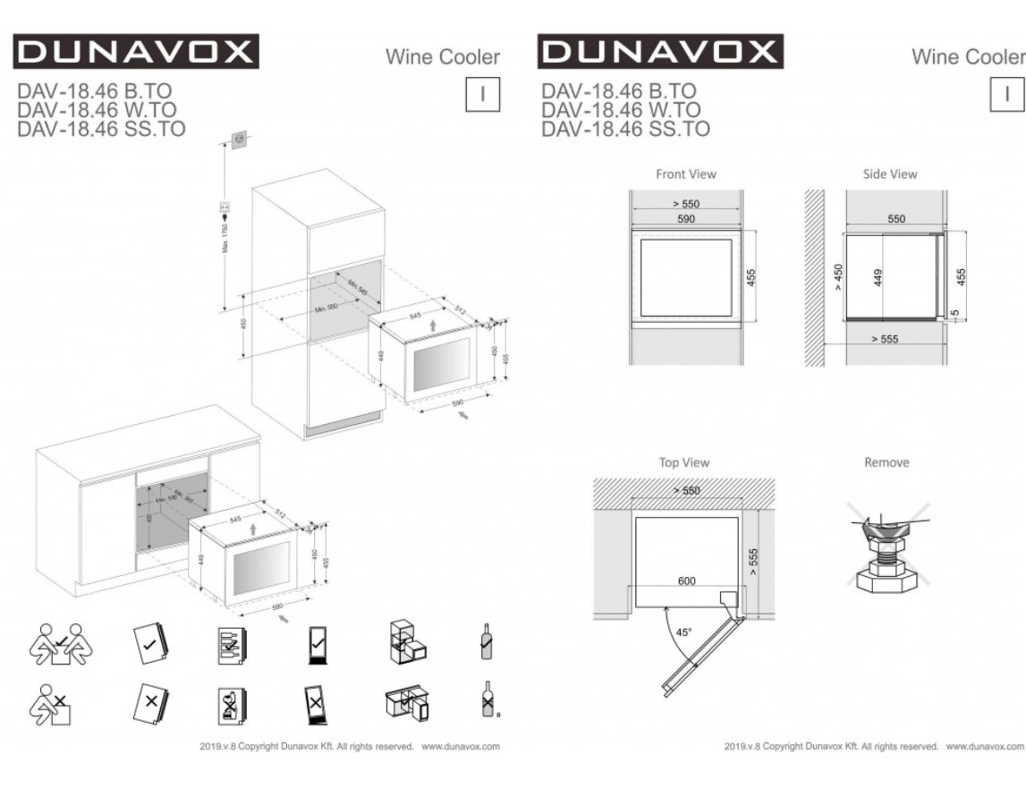 Dunavox DAV-18.46SS.TO - схема с размерами к винному шкафу на разных языках на Hausdorf