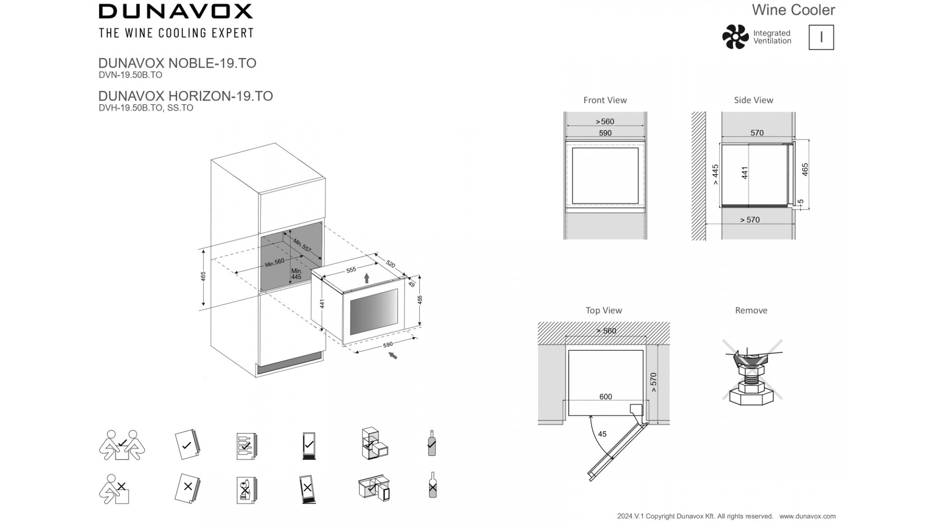 Dunavox DVH-19.50SS.TO - схема с размерами к винному шкафу на разных языках на Hausdorf