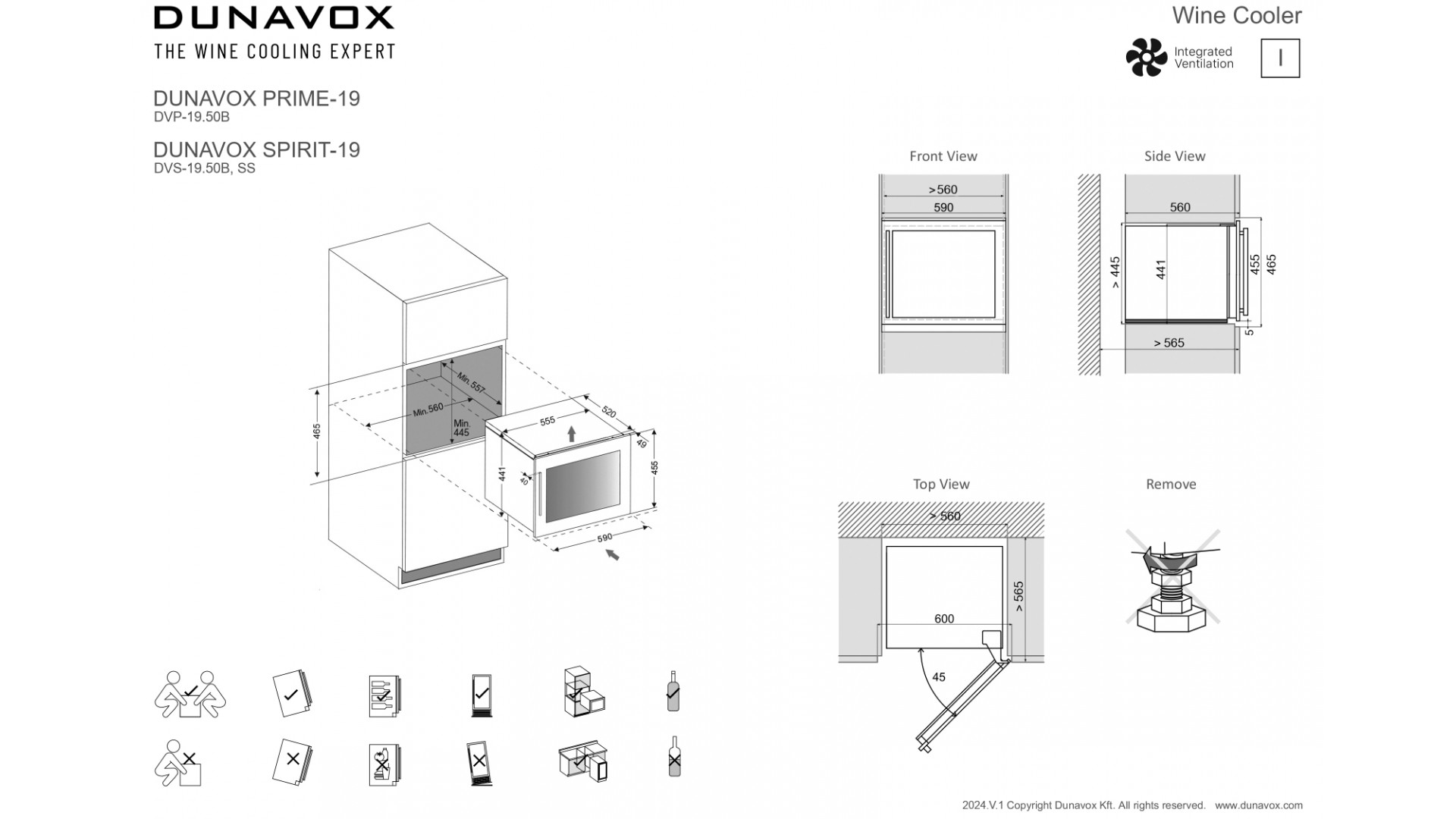 Dunavox DVS-19.50MB - схема встраивания к винному шкафу на разных языках на Hausdorf