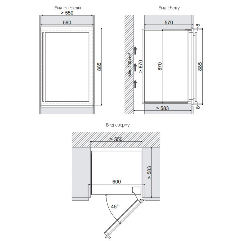 Dunavox DX-57.146DBK - схема с размерами к винному шкафу на разных языках на Hausdorf