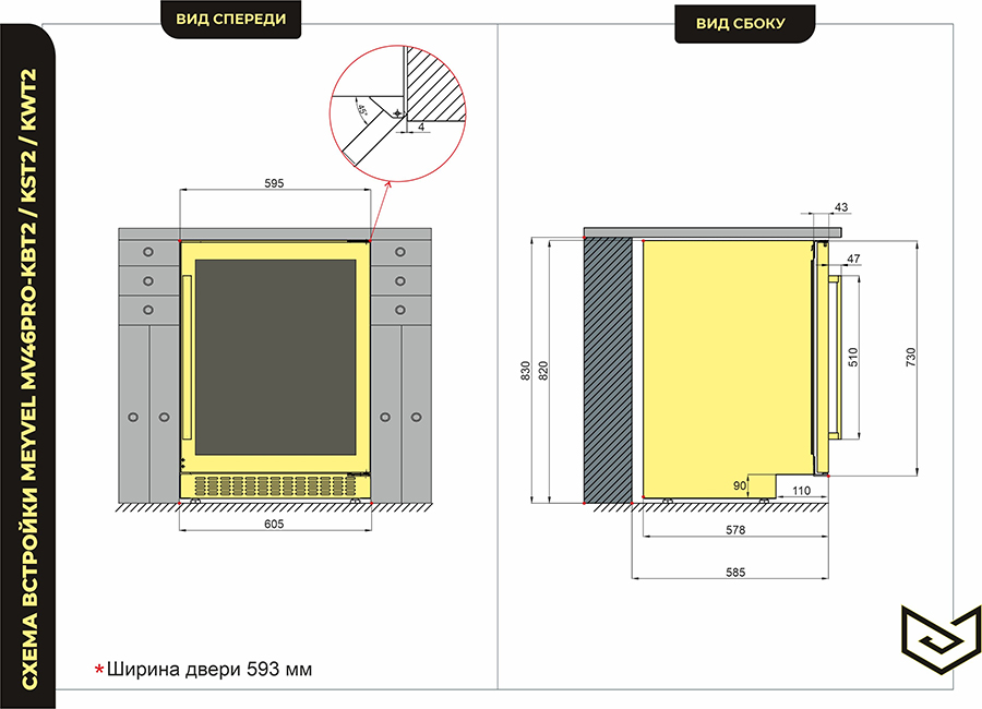 Meyvel MV46PRO-KBT2 Natural beech - схема встраивания к винному шкафу на разных языках на Hausdorf