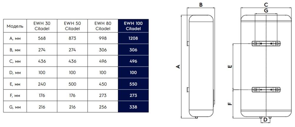 Electrolux EWH 100 Citadel - схема с размерами версия 2 к водонагревателю на разных языках на Hausdorf