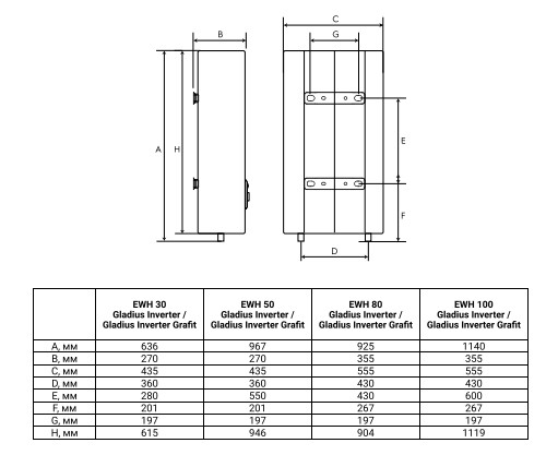 Electrolux EWH 50 Gladius Inverter - схема с размерами версия 2 к водонагревателю на разных языках на Hausdorf