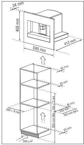 De Dietrich DKD7400XB - схема встраивания с размерами к кофемашине на разных языках на Hausdorf