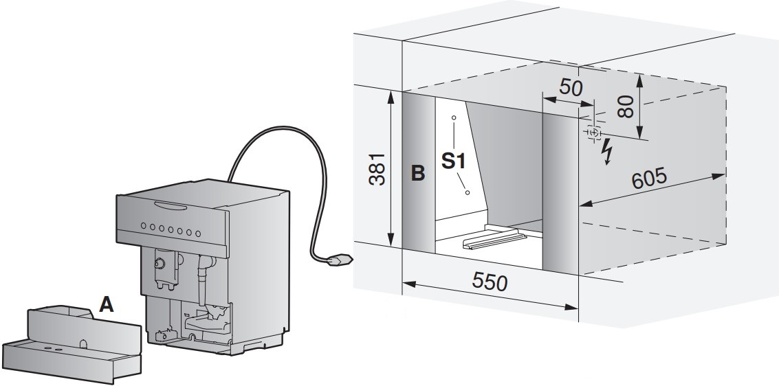 V-ZUG CCS-SL 301 - схема встраивания с размерами к кофемашине на разных языках на Hausdorf