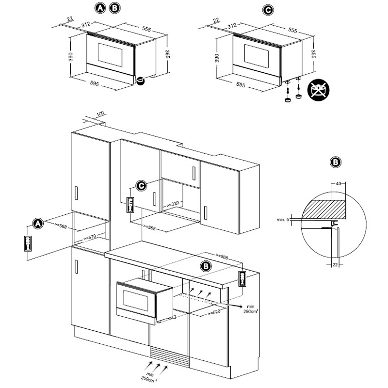 Teka ML 822 BIS L - схема встраивания к микроволновой печи на разных языках на Hausdorf