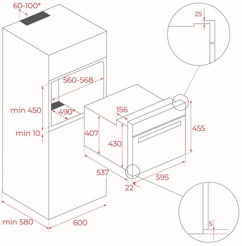 Teka MLC 8440 NIGHT RIVER BLACK - схема встраивания с размерами к микроволновой печи на разных языках на Hausdorf