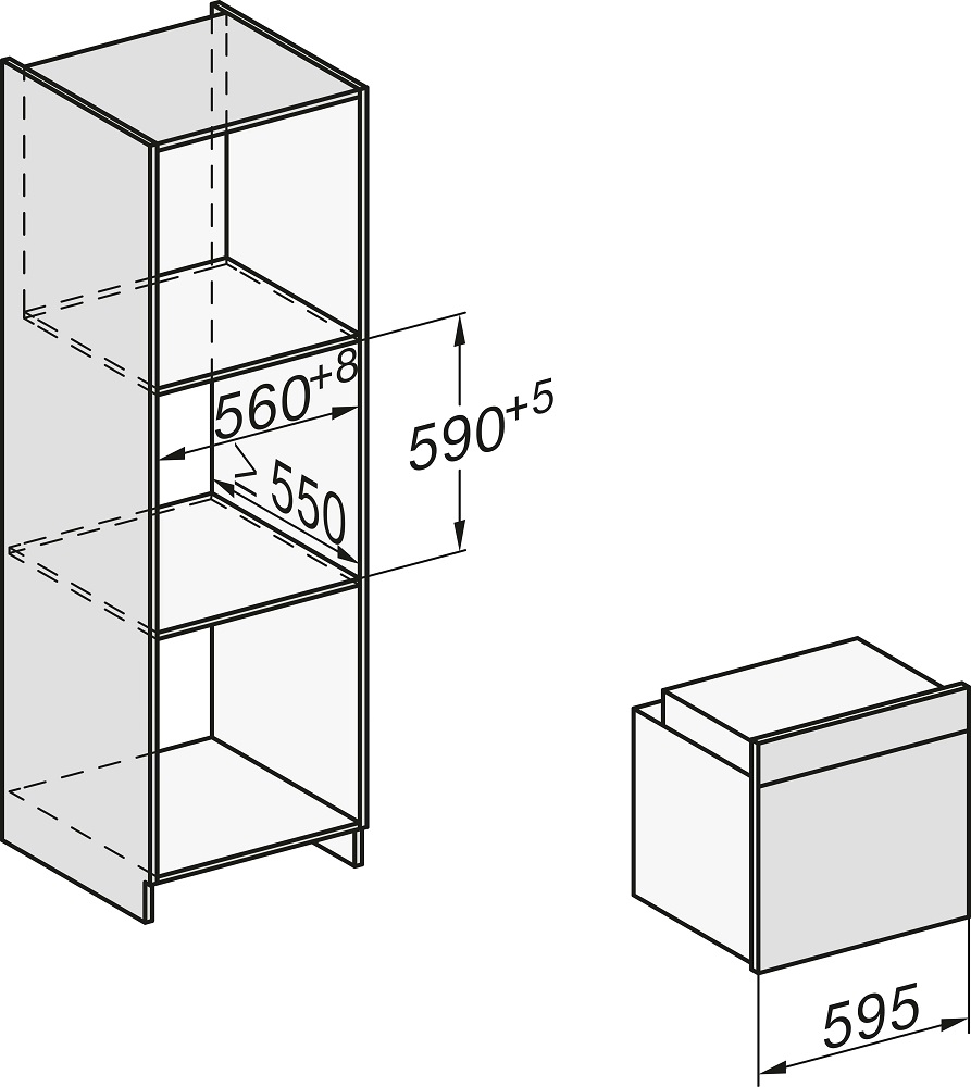 Miele DGC 7450 OBSW - схема встраивания с размерами (1) к пароварке на разных языках на Hausdorf