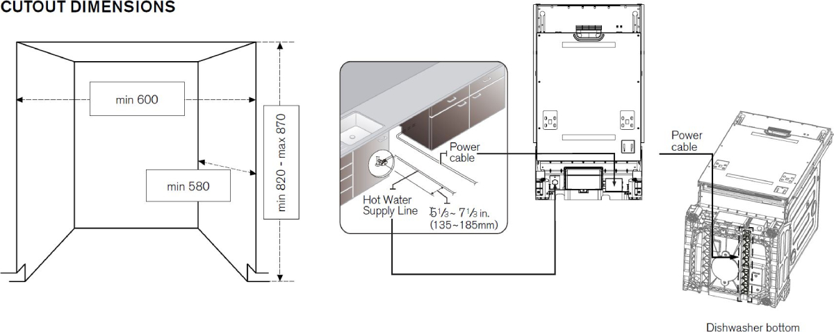 Bertazzoni DW60EPRS - схема встраивания к посудомоечной машине на разных языках на Hausdorf