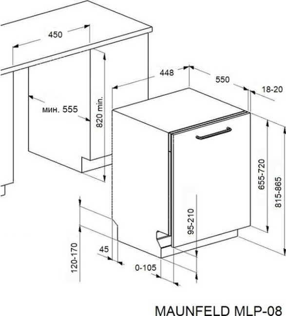Maunfeld MLP-08I Light Beam - схема встраивания к посудомоечной машине на разных языках на Hausdorf