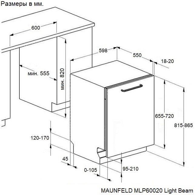 Maunfeld MLP60020 Light Beam - схема с размерами версия 2 к посудомоечной машине на разных языках на Hausdorf