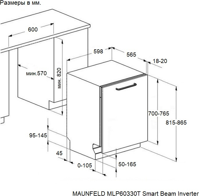 Maunfeld MLP60330T Smart Beam Inverter - схема встраивания к посудомоечной машине на разных языках на Hausdorf