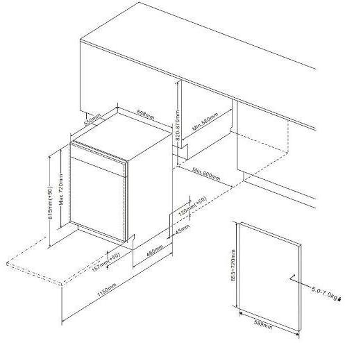 Toshiba DW-16B1(B)-RU - схема встраивания с размерами к посудомоечной машине на разных языках на Hausdorf