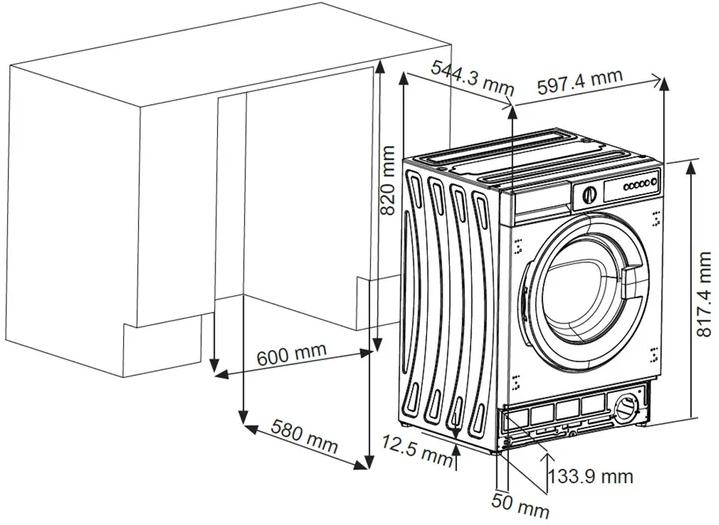KRONA KAYA 1200 7K WHITE - схема встраивания с размерами к стиральной машине на разных языках на Hausdorf